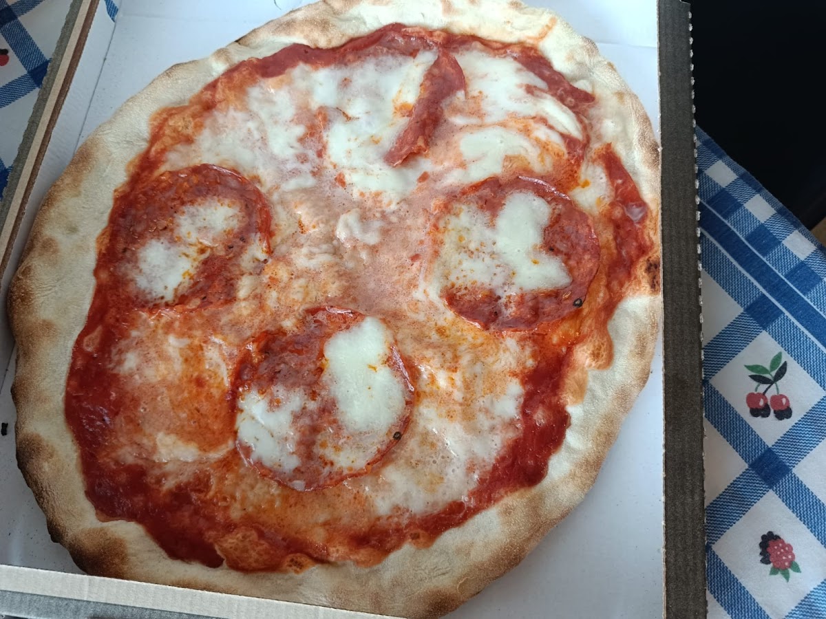 Pizza ottima, prodotti sono di ottima qualità, ma la cosa che mi ha stupito è la puntualità sull’ordine delle pizze non ho mai aspettato 1 minuti in più dell’orario stabilito la pizza ovviamente era calda che è raro trovare in altri posti.